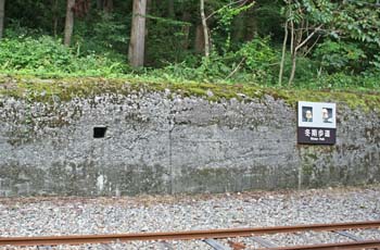 出平駅で目に付くのが冬季歩道。コンクリートの穴は通風孔。コンクリートでてきたシェルター状のもので黒部峡谷鉄道が冬季運休中に発電所の点検のための移動手段(徒歩)として、また生鮮食品や郵便・新聞などの運搬手段として使用される。長い距離でおよそ6時間かかるとのこと。