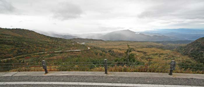 美女平駅からはこのアルペンルートで最も長いバスでの移動(移動時間50分)となる。美女平から室堂まで高低差1500mを「立山高原バス」で一気に駆け上がる。旅行の事前調査では進行方向右手の座席が風景が良いと思っていたが、これが大間違い。圧倒的に左の座席が良かった。