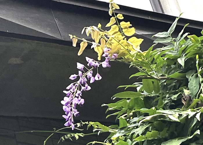 毎年、なぜかこの時季咲き始めるフジ。この暑い今夏でも咲き出した。