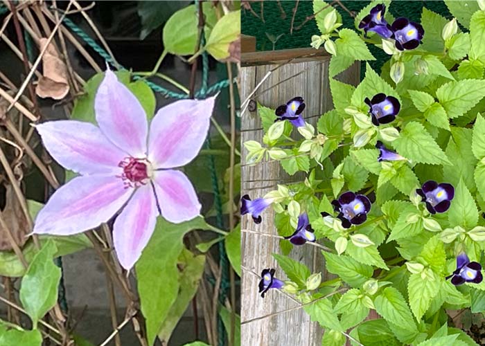テッセンが満開となった。今年は花数が少なく残念に思う。 藤棚は花の盛りを終え花房を切り取った夏の装いとなった。少しすっきりとした感じがする。この房の除去、結構時間がかかり老体には堪える仕事となってきた。この作業が出来なくなれば、残念だがフジを切らなければならないだろう。