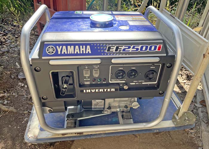 年に1度くらいは発動発電機をまわし動作の有無を確認し、災害の時に備えようということで動かしてみた。オイルの確認、少しの時間稼動させるくらいの給油を済ませ、エンジンスイッチON・燃料コックON・チョークノブを引いてリコイルスタータハンドルを勢い良く引いたが1年ぶりのためか中々動かない。4度目にやっと動いた時はホッとした。 オイル漏れはないか、エンジン音は正常か、エコノミースイッチの切り替えは正常かなどを確認しこの日の我が家の短い防災訓練を終えた。