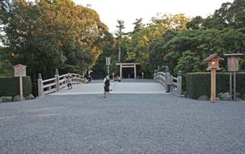内宮は天照大神を祀ってあるが、ここ外宮は天照大神の食事を司る神の豊受大神を祀ってある。内宮は大変混雑していたが外宮の参拝者はまばら。テレビで放送していたが、以前はこんなことはなかったようで、どうも伊勢自動車道ができてからこのような流れになったらしい。 今日は満月、勾玉池では観月会が開催されるとのことで、なにやらセレモニーが行われていた。