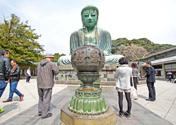 鎌倉滞在時間が長いということで見学コースになかった大仏を見ることにした。源頼朝の墓からは通りに出てタクシーを捕まえるつもりでいたが、何と石段を下りたところにタクシーが現れそのまま乗車というラッキーなことがあり、道路が混雑していたこともあったが思ったよりスムーズに大仏に着くことができた。