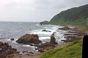 今日はいよいよ能登半島一周の旅である。2年前に輪島の朝市には来ているが一周はしていないため楽しみにしていたが、この日も相変わらずの雨、さらには風までが強く吹いている有様。お陰で、のと里山海道今浜IC付近の電光掲示板に<走行できない>との表示がされており、バスはそのまま通過せざるを得なかった。